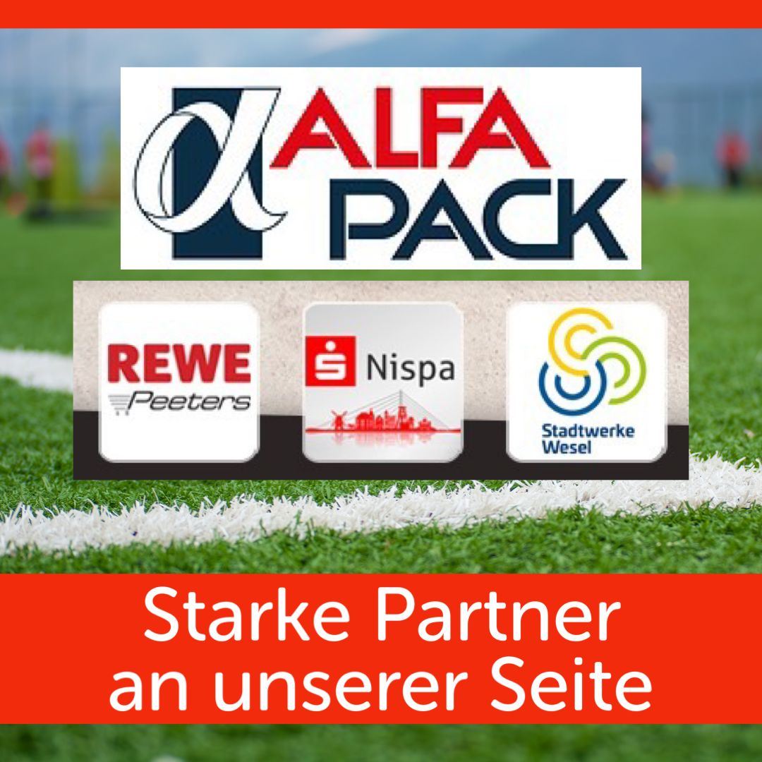 Wir sind stolz auf unseren Hauptsponsor Alfa Pack, der uns seit November 2022 tatkräftig unterstützt. Die Weseler Firma der Familie Tagay, mit Filialen in Wesel, Duisburg und Mülheim, hat schon mehrere unserer Mannschaften mit Trikots oder Trainingsanzügen ausgestattet, darunter die 1. Herren, die B1-, D1-, D2- und E3-Junioren und zuletzt die F2-Junioren. Des Weiteren finanziert sie als Sponsor unser SuS Wesel Alfa Pack Turnier vom 08.06-11.06.2023 im Auestadion.